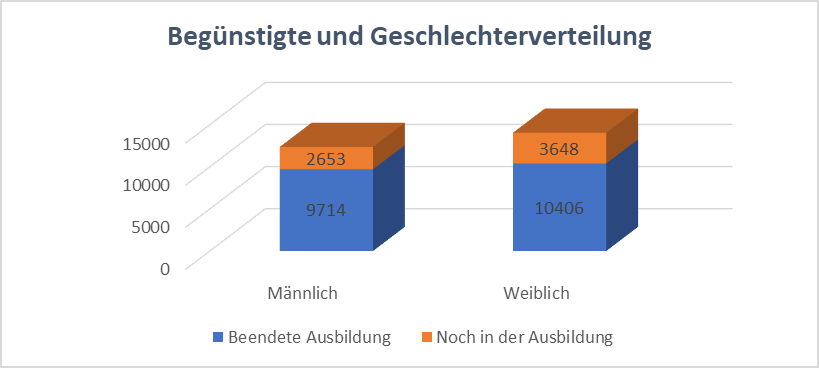 Von diesen Absolventen haben rund 18.370 nach Abschluss ihrer Berufsausbildung eine Beschäftigung gefunden (etwa 70% der Ausgebildeten).