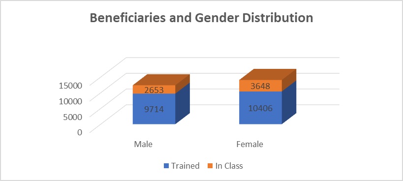 Of these approximately 18.370 are employed as they finish their skills training (approximately 70% of those trained).