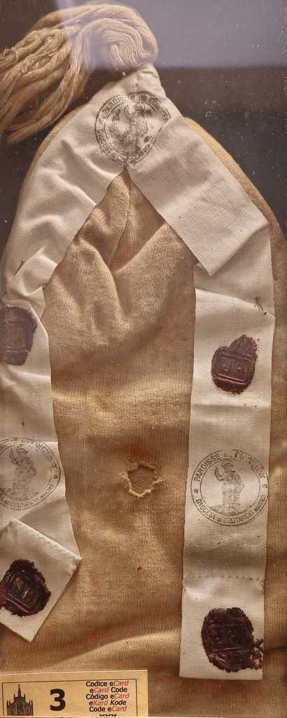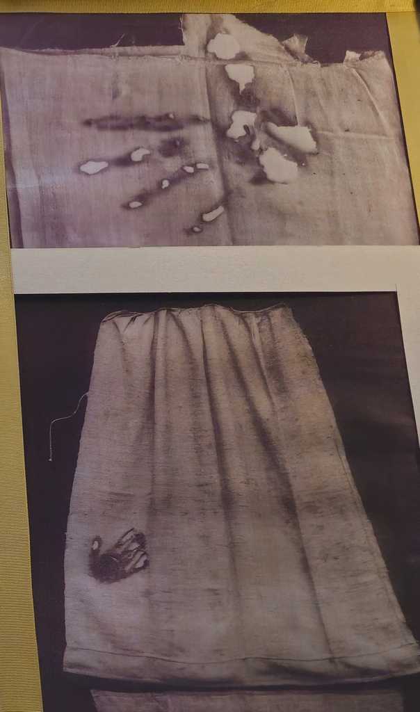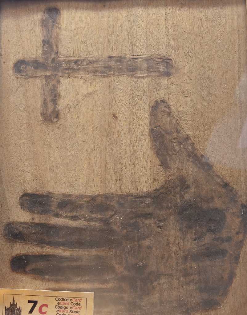 Le musée conserve des empreintes brûlées sur des tissus, des livres, des vêtements et des tablettes de bois. Chaque pièce raconte une histoire de supplication silencieuse. Parmi les pièces, il y a l’empreinte d’une main brûlée sur le tablier de Maria Herendorps, sœur laïque de l’ordre bénédictin à Vinnenberg, appartenant à la sœur Klara Schoelers, morte 59 ans auparavant. Il y a l’empreinte d’une main brûlée dans le bois : sur ce fragment de bois du bureau ayant appartenu à la Servante de Dieu mère Isabella Fornari, qui fut prieure des Clarisses à Todi. Il y a l’empreinte d’une main brûlée sur un exemplaire du livre « L’Imitation de Jésus-Christ », appartenant à Marguerite Demmerle d’Ellenghen (Metz, France) et d’autres encore.