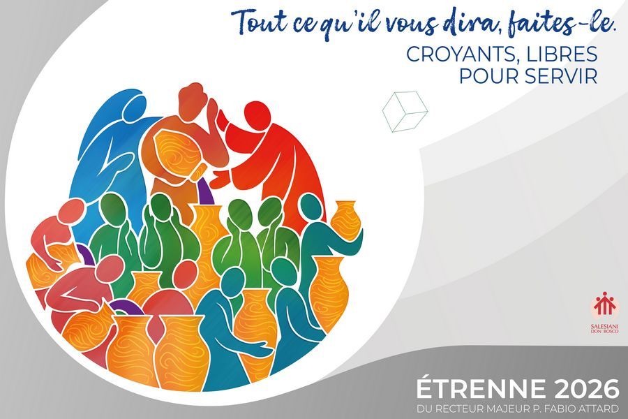 Le vin nouveau des noces de Cana, qui symbolise la nouveauté promue par ceux qui croient, nous l’apportons avec joie et espérance aussi et surtout au milieu des défis et des difficultés, des doutes et des incertitudes. Tant dans l’Église que dans la société, les jeunes que nous accompagnons sont porteurs d’une soif de vie authentique. Ils cherchent à rencontrer des croyants qui communiquent une proposition chrétienne crédible, et c’est pour cette raison qu’ils sont crus par eux. C’est le défi que l’ÉTRENNE 2026 confie à nous tous, dans la Famille Salésienne, qui avons à cœur les nouvelles générations.