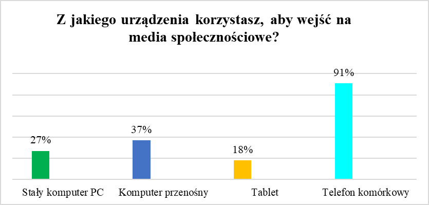 – 91% naszej młodzieży używa telefonów komórkowych, aby mieć dostęp do mediów społecznościowych. Z tymi urządzeniami wiążą się problemy behawioralne, a nawet możliwe problemy zdrowotne. 75% respondentów jest podłączonych do internetu przez ponad 6 godzin tygodniowo, a w niektórych przypadkach może to być nawet ponad 20 godzin. Bycie podłączonym ma wiele konsekwencji, jak np. przesunięcie rozwoju umiejętności społecznych, relacji, wiedzy itp.